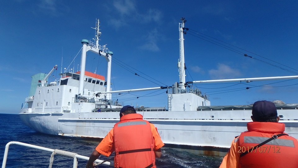 漁業署與行政院海岸巡防署海上打擊涉嫌載運IUU漁獲外籍運搬船