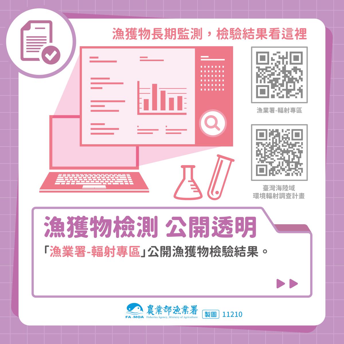 ✅海洋漁場及漁獲物檢驗結果,均公告在以下平台:
