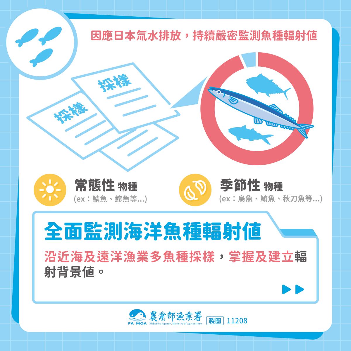 因應日本福島含氚廢水的排放作業,核能安全委員會已組成跨部會因應平台,農業部透過跨機關合作,強化漁獲物及漁場環境輻射監測,共同守護國人食魚安全。