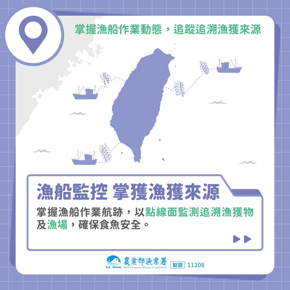 ✅掌握漁船作業動態,以點線面追蹤漁獲物及漁場,確保食魚安全。