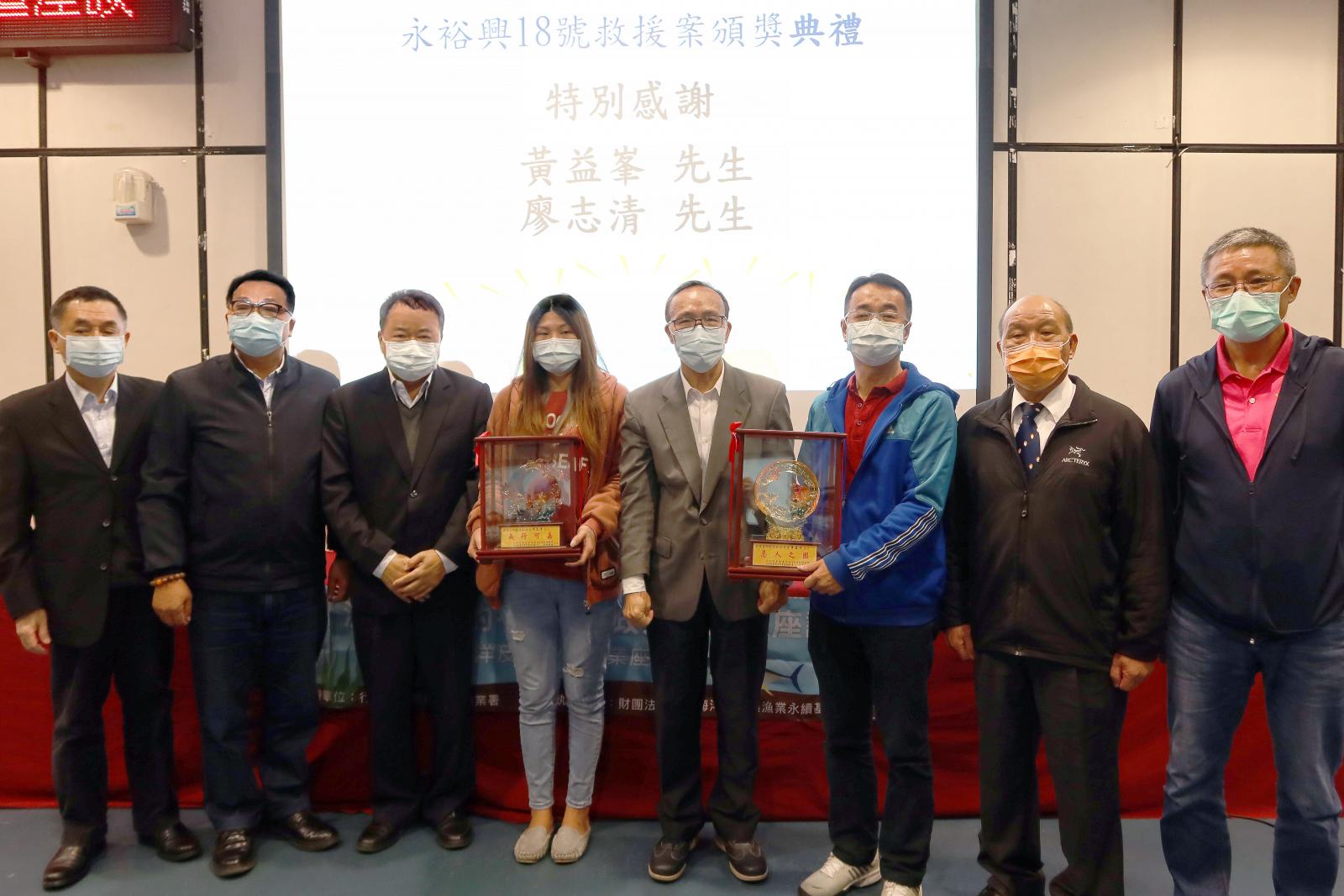 農委會和漁業署也在會中表揚參與救援「永裕興18號」漁船的「金慶富66號」漁船船主及船長(另開視窗)