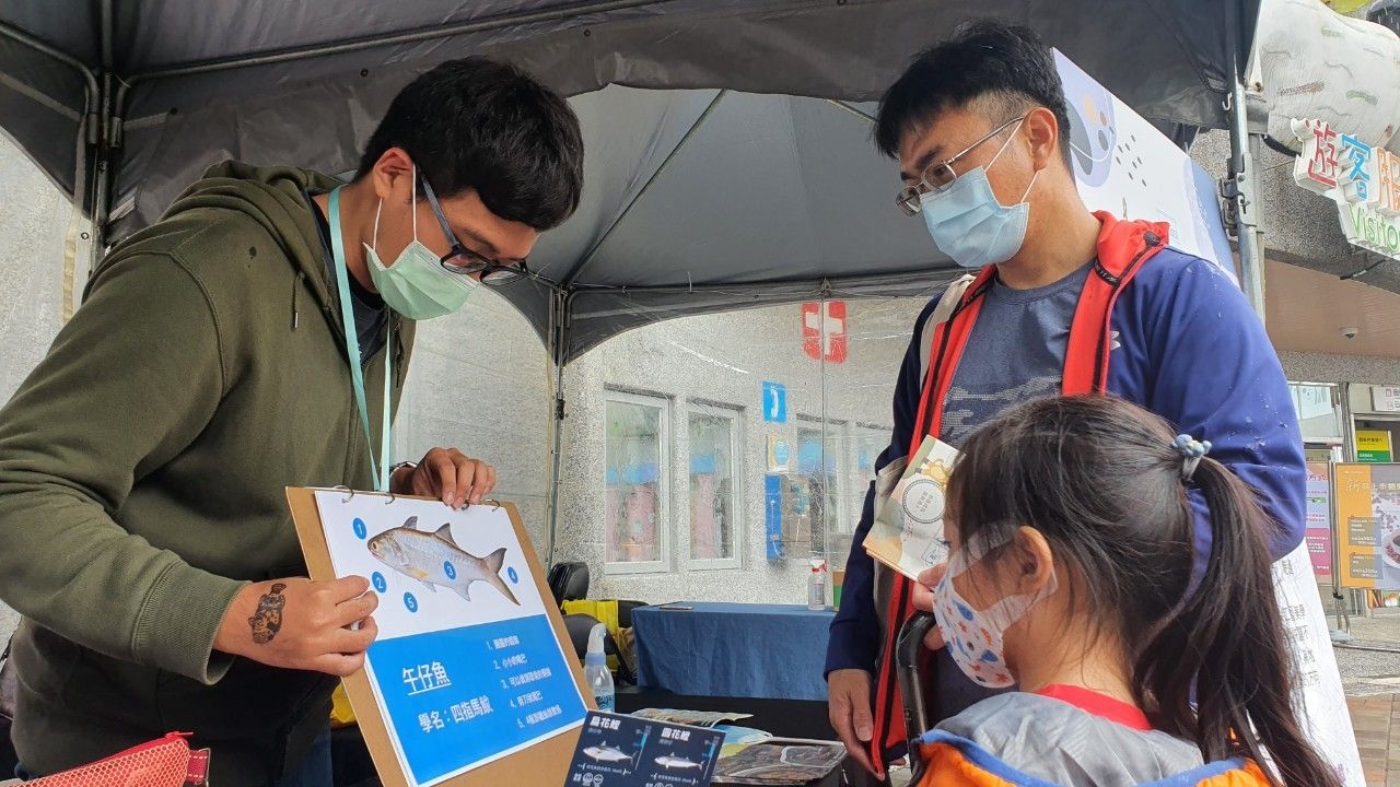 今日的戶外親子食魚文化活動共有四個主題區域,包含「奇幻魚樂舞台區」、「神秘鱻境闖關區」、「趣味魚遊挑戰區」、「創意心鱻市集區」,其中「創意心鱻市集區」邀集了大小港邊熱帶漁林、年年有鰆、股份魚鄉、迴遊吧、財團法人臺灣海洋保育與漁業永續基金會、國立高雄科技大學─鄰家好漁、基隆市政府產業發展處、湧升海洋等單位;產、官、學八個致力於食魚教育的團隊,帶領孩子從產地到餐桌,從識魚、食魚到惜魚,建立正確食魚及海洋永續觀念。