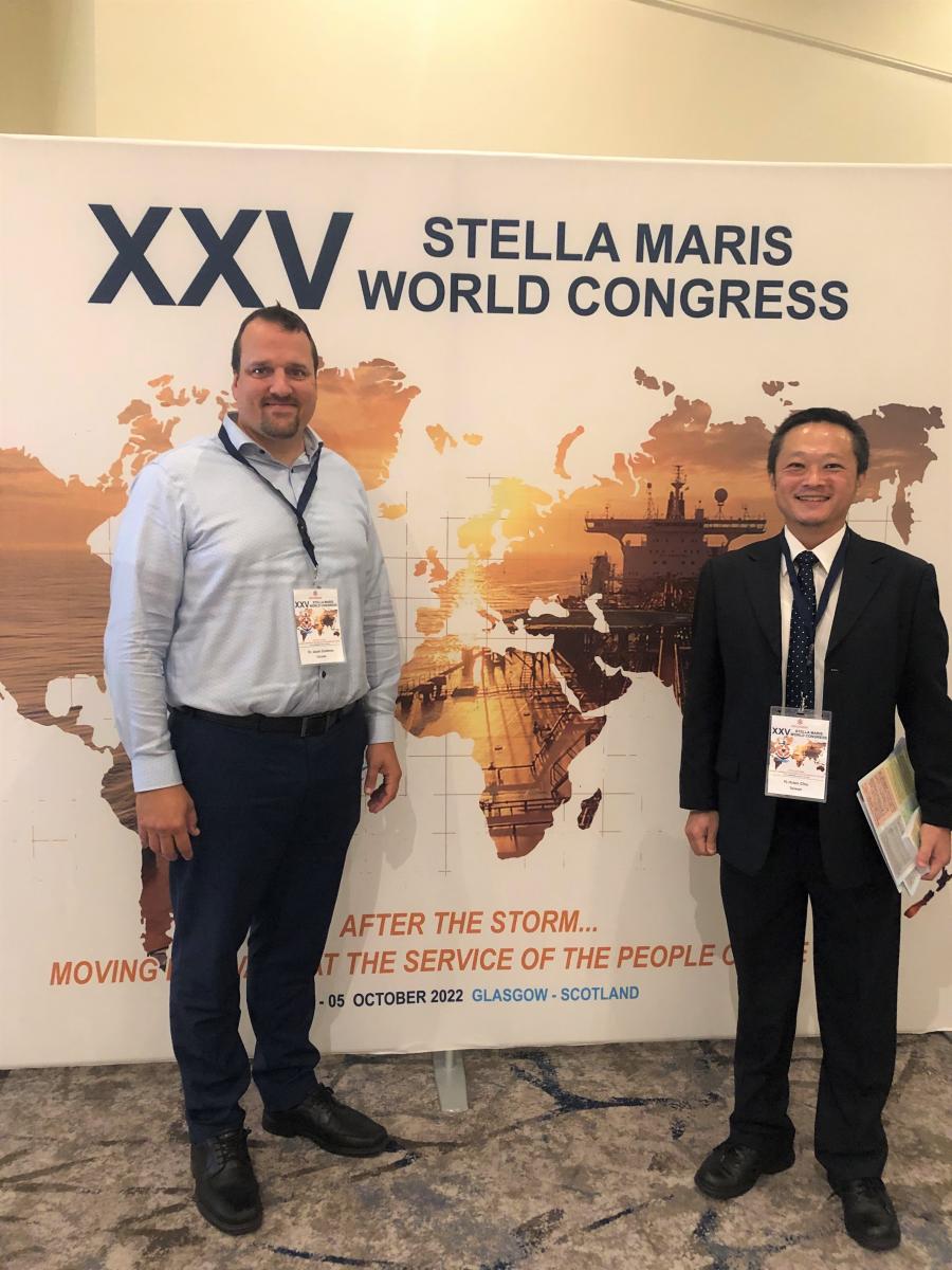 梵蒂岡城羅馬教廷在本(111)年10月2日至5日,在英國格拉斯哥市舉辦「海星教會」(Stella Maris)第25屆世界會員大會暨101年紀念大會,並邀請我國代表於大會中向來自全球53個國家的天主教神職人員說明,臺灣在漁業人權方面的政策與推動進展,代表出席的漁業署同仁並於會場向與會人員說明臺灣提升外籍船員權益措施,及分送向外籍船員宣導的各種外語權益小卡、播放各種外語船員權益宣導影片,獲各國天主教代表正面肯定,並熱烈交流我國相關措施的規劃及執行細節。