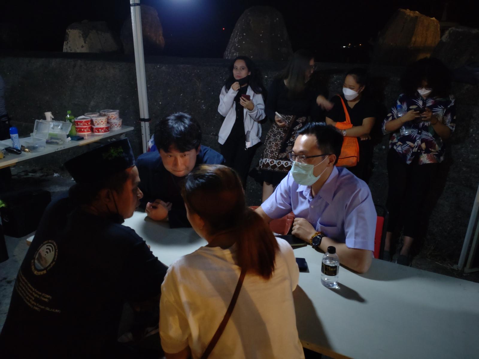 111年鹽埔泊區外籍船員義診義剪關懷活動大合照,出席貴賓包含駐臺北印尼經濟貿易代表處勞工部組長NOERMAN、國立中正大學勞工關係學系劉黃麗娟副教授、東港區漁會鄭鈺宸總幹事、台灣鮪延繩釣協會何世杰秘書長、台灣區遠洋魷魚暨秋刀魚漁船魚類輸出業同業公會施教智總幹事、合海漁業股份有限公司孔坤桐董事長、漁業署周玲妃科長及邱宜賢科長等