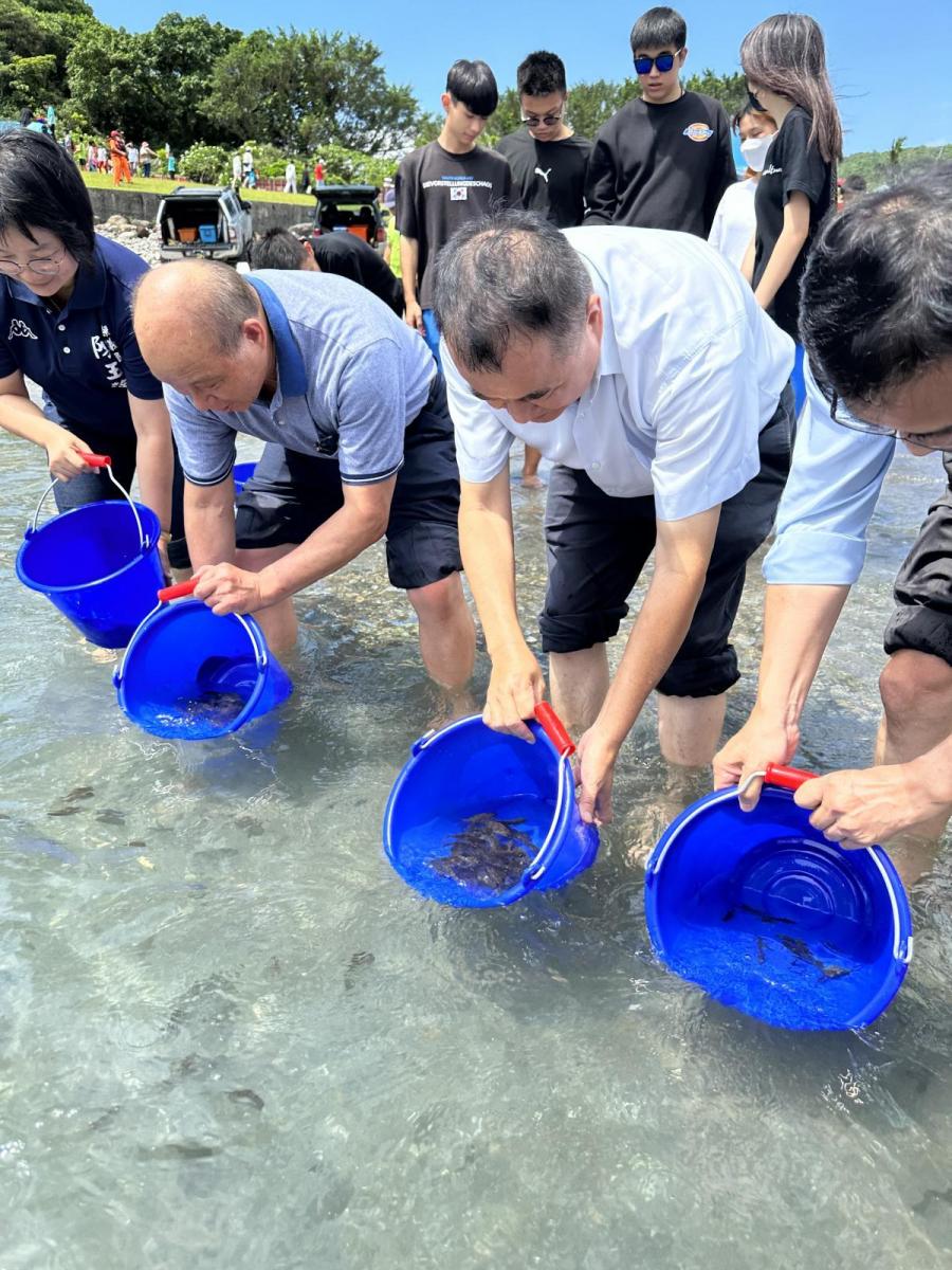 - 為響應本(2023)年世界海洋日主題「海洋星球:潮流之變」,並提升全民對永續漁業及資源保育的意識,漁業署於6月8日在宜蘭縣豆腐岬附近海域舉辦種苗放流活動,透過投入健康優質之種苗,為海洋增添新的生命活力,期盼以實際行動,讓屬於我們的海洋星球邁向全新的正面潮流。 - 漁業署說明,保育海洋生態與資源永續利用已成為重要課題。為此,漁業署與財團法人臺灣海洋保育與漁業永續基金會於世界海洋日舉辦傳承海洋生命-種苗放流活動,同時邀請宜蘭縣海洋及漁業發展所、交通部航港局、中華民國全國漁會、蘇澳區漁會、頭城區漁會、蘇澳鎮南安國小、蘇澳鎮觀光小鎮發展協會及南方澳商圈發展協會共同參與,漁業署張致盛署長表示希望結合當地學校學童參與,放流健康的斑石鯛、嘉鱲、瓜子鱲、九孔及紫海膽等原生生態物種,讓學童在參與放流過程中,建立正向環境永續觀念。 - 漁業署進一步說明,放流應選擇符合放流地點原有分布之物種,另為利種苗適應當地環境,於放流前會調整養殖環境與放流海域水溫及鹽度相當,放流當下配合放流地點採取適當方式,如架設魚梯或以水桶進行接力,水桶放流時先讓海水慢慢流入水桶內,再讓魚苗自行游離水桶,以提升放流效益。此外為維護沿近海棲地環境與資源,漁業署每年辦理覆網清除工作,並與海巡署、地方政府執行巡護工作,落實責任漁業管理,讓魚苗有安全及乾淨生活環境。本年度更規劃辦理放流教育訓練課程,逐步解說放流過程須注意事項,樹立正確放流實踐的典範,落實「在對的時間及地點,用對的方式放流對的魚種」政策目標。 - 漁業署最後表示,臺灣海洋生態與資源豐富多樣,透過種苗放流活動有助於海洋漁業資源繁殖復育,漁業署每年放流約700萬尾健康種苗,增裕沿近海漁業資源,提升海洋生產力,具有生態、生活、生計「三生」活化的外溢效果,為海洋環境帶來正向循環,漁業署以實際行動於世界海洋日舉辦放流活動,傳承海洋生命,豐富海洋生態,讓海洋漁業資源永續利用。 - 聯絡人:劉福昇組長