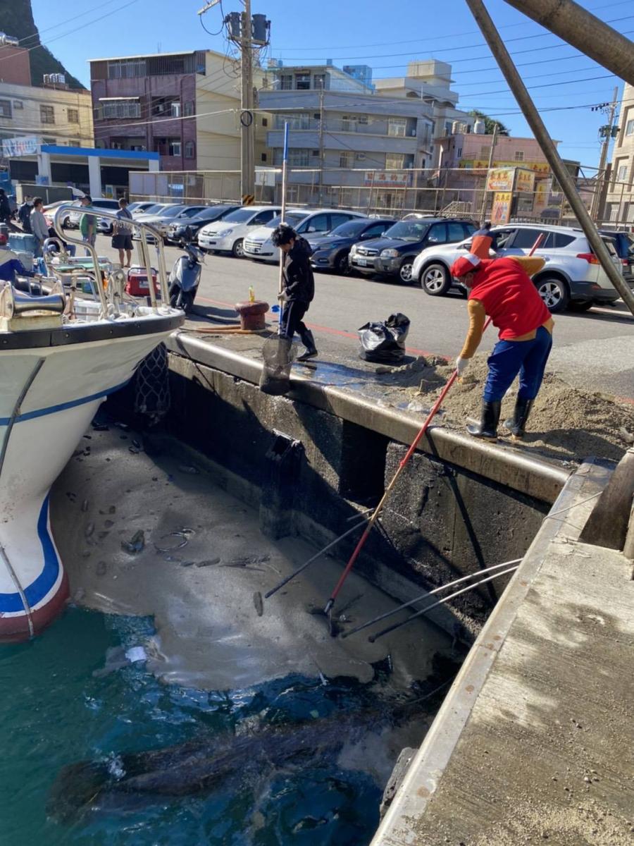 在深澳漁港港區內執行打撈浮石作業(另開視窗)
