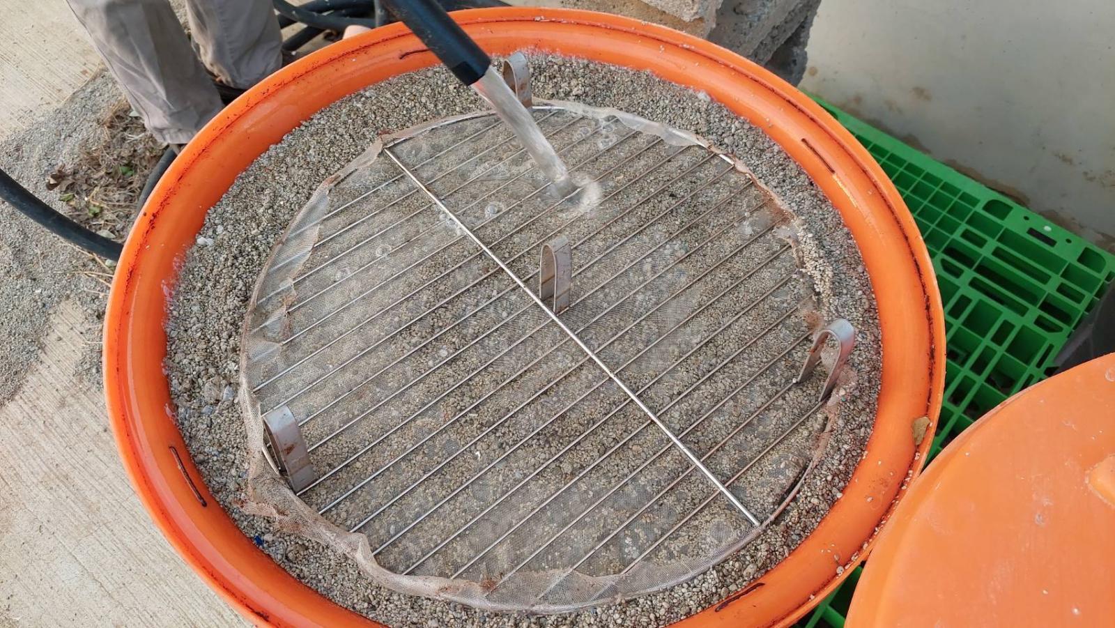 浮石降鹽分處理:因為浮石從海水撈起會參雜鹽分,所以先浸泡一段時間,再檢測酸鹼度值跟電導度值是否會降低。照片來源:由桃園農業試驗改良場提供)(另開視窗)