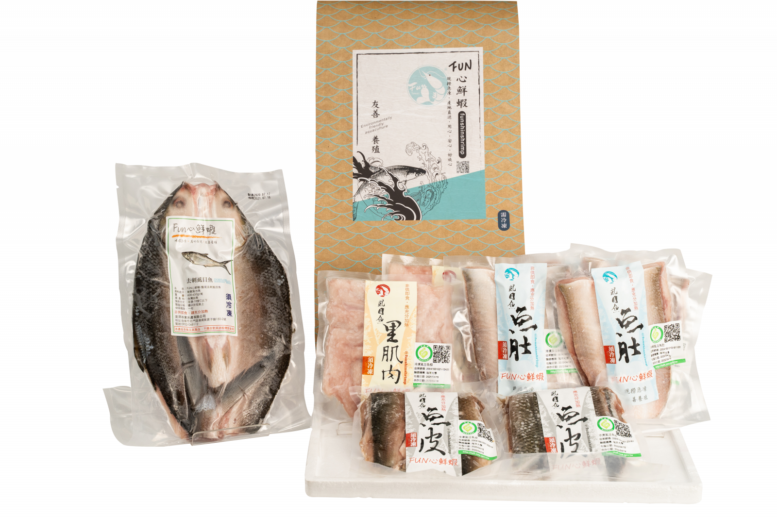 虱目魚全魚加工生產去刺虱目魚,友善養殖,維護生態環境達到產業永續發展;透過不同成長階段的飼料投餵,讓魚肉能夠更佳細緻美味;分部位去刺截切,也便利上班族喜好分成更小份量包裝,虱目魚通過產銷履歷驗證。外包裝以浮世繪風格帶出友善養殖虱目魚的意象,加上使用麻繩綑綁作為手提繩,有濃濃古早味,麻繩可重複利用環保也再加分。