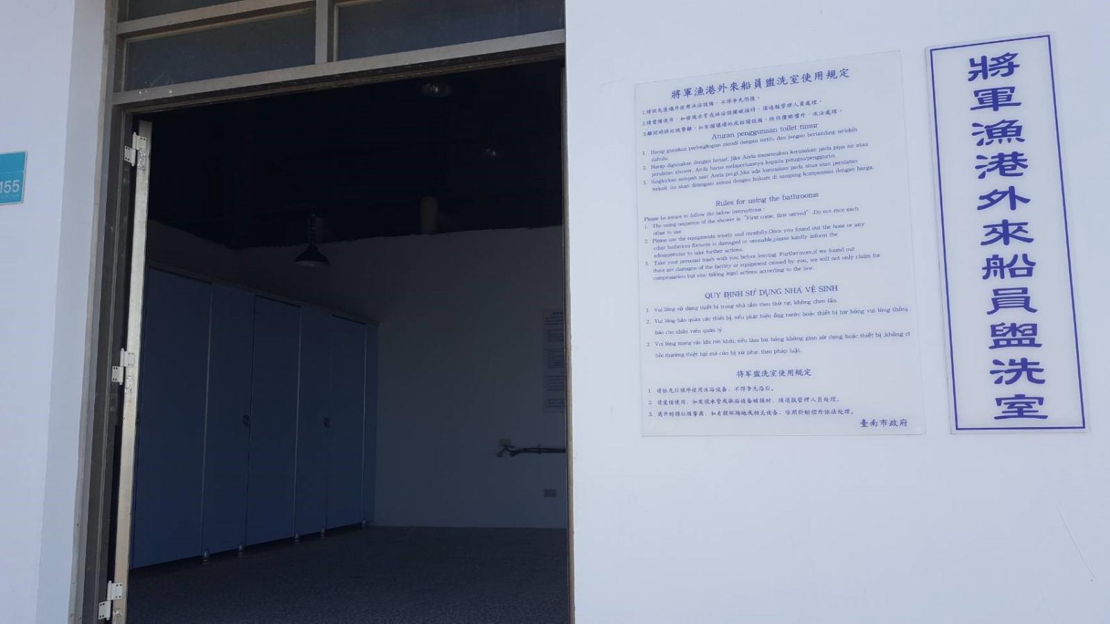 為使外籍船員在漁港生活更舒適,漁業署與臺南市政府合作在將軍漁港設置盥洗室,全案歷經變更設置位置後,終於在去年底完成,111年1月啟用,盥洗室全天候提供熱水,讓外籍船員在辛苦工作之後能洗去一身的疲勞,放鬆海上工作的緊繃。