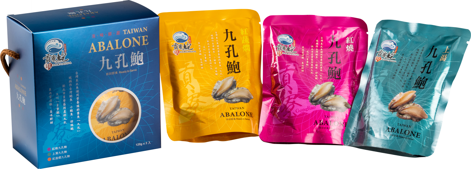 規格:上湯九孔饗食包(120g)×1、紅燒九孔饗食包(120g)×1、紅蔬燜九孔饗食包(120g)×1