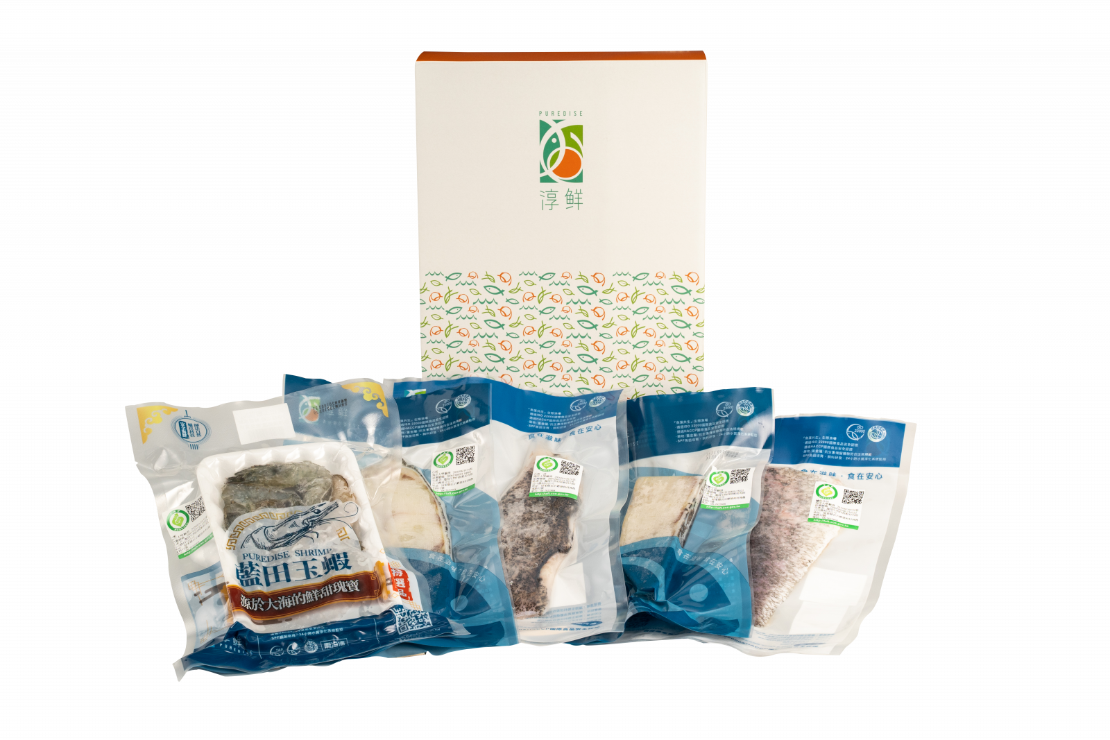 規格:龍膽石斑無骨法式魚排(200g)×1包、龍膽石斑鮮切魚排(220g)×1包、龍虎斑無骨法式魚排(200g)×1包、鱸魚法式魚排(200g)×1包、特大藍田玉蝦(300g)×1盒