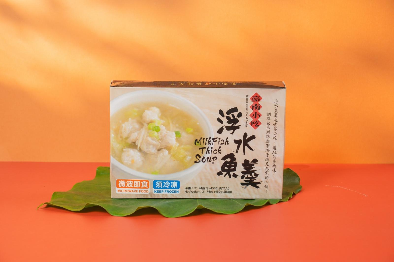 以新鮮虱目魚肉製成的魚羹,佐以筍絲、蒜酥等獨門調配的湯品,製成道地的臺南小吃- 浮水魚羹,簡易復熱即可食用。國內知名的虱目魚主題館、林百貨等通路皆有販售;國外的華人超市亦有實體上架,讓離家遊子輕鬆滿足想家的心情。