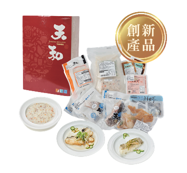 龍膽石斑魚高湯300gX1、海鱸魚魚高湯300gX1、黃金鯧魚排米粉800gX1、青斑高麗菜粥300gX1、海藻豬獅子頭285gX1