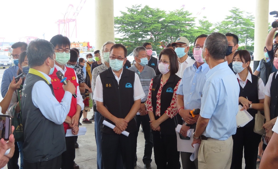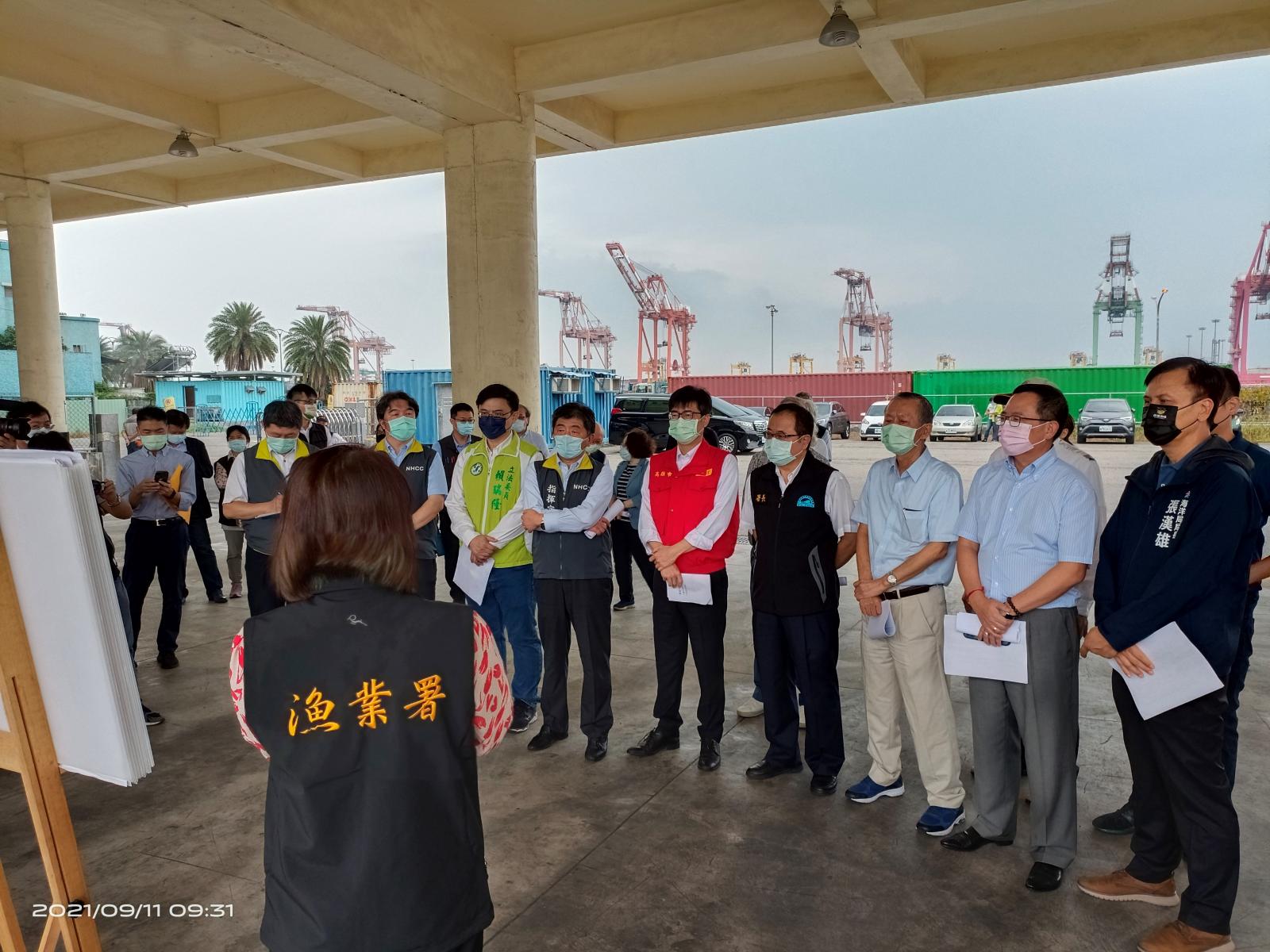 疫情指揮中心陳時中指揮官在漁業署張致盛署長及高雄市陳其邁市長陪同下,訪視前鎮漁港防疫檢疫措施(另開視窗)