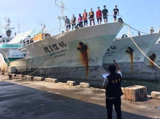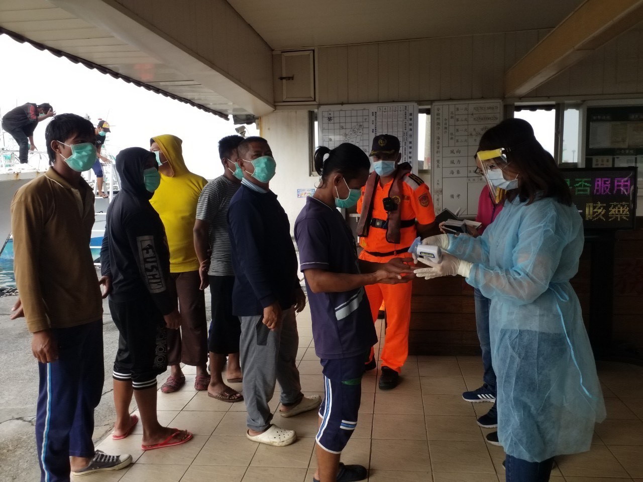 為強化入境船員管理,於漁港劃設檢疫專區,跨機關建立嚴密監控系統,並於船員入境時進行防疫宣導及辦理檢疫時進行關懷,滾動強化落實人員實名制及作好檢疫專區進出人員清冊、於卸魚時配戴不同顏色臂章,場域清潔消毒及加強碼頭船席區隔等作為。