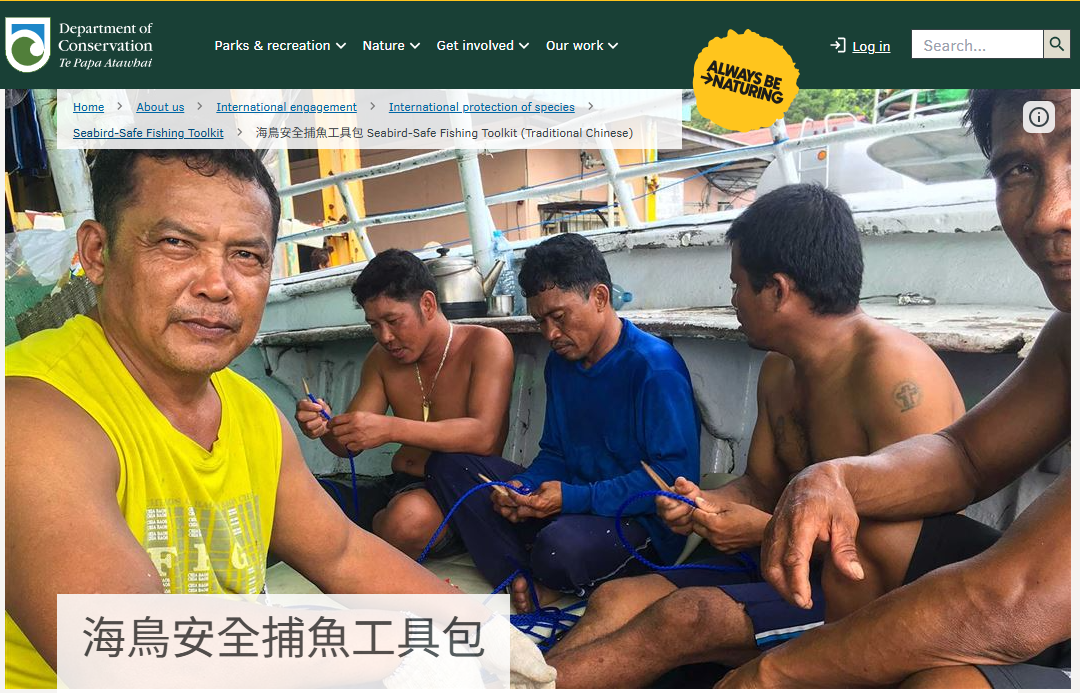 紐西蘭保育部「海鳥安全漁撈工具包」網站