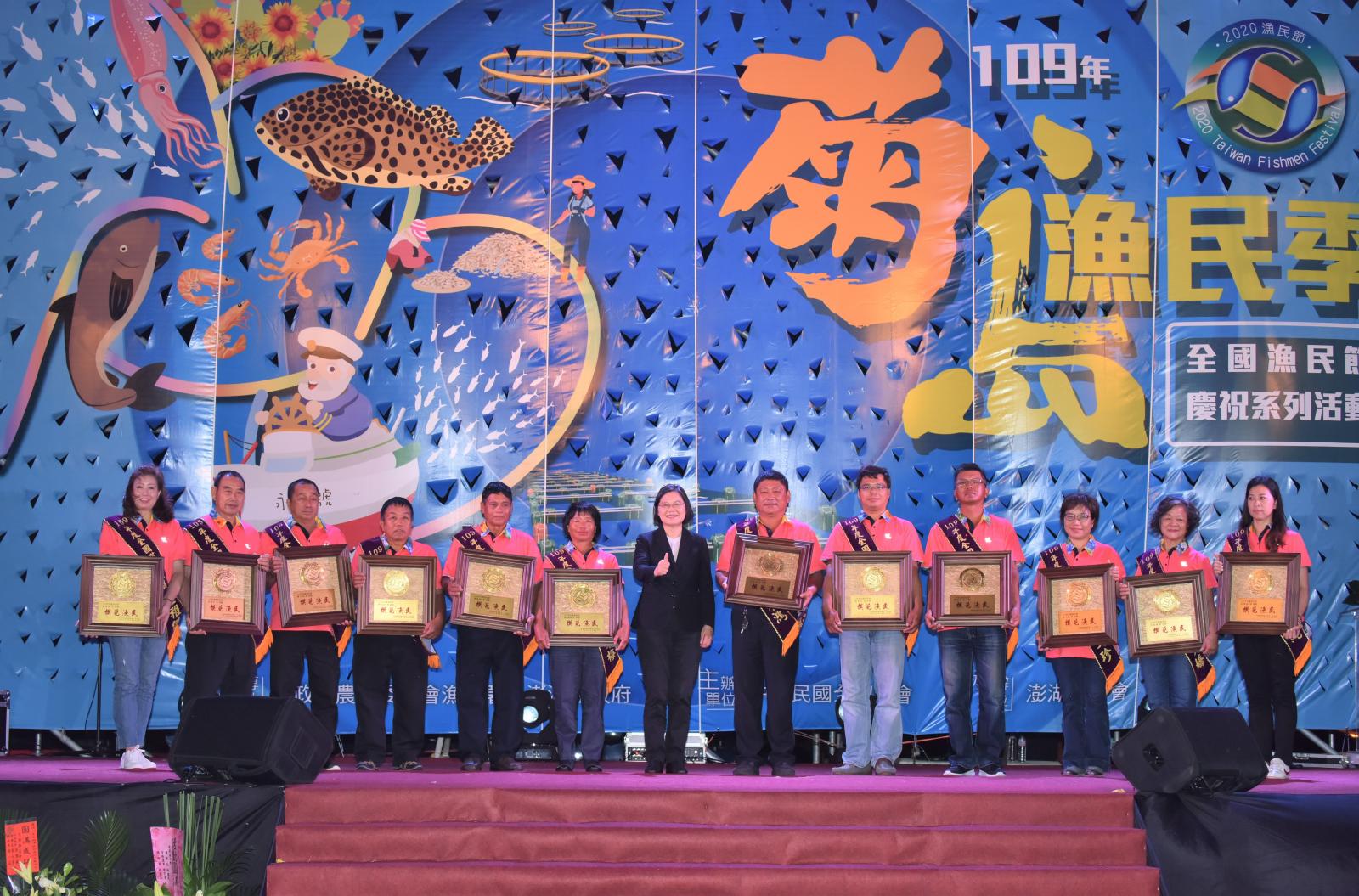 本(109)年全國漁民節慶祝活動,今(16)日在澎湖馬公第三漁港盛大登場,蔡英文總統、立法院楊曜委員、農委會陳吉仲主任委員、陳添壽副主任委員、漁業署張致盛署長、海委會莊慶達副主任委員、澎湖縣賴峰偉縣長等中央及地方首長均出席頒獎典禮,共同為12位全國模範漁民、20位全國優秀漁民及其他對漁業卓有貢獻人士喝采。今年所選出的12名全國模範漁民,有4位女性模範漁民,顯示女性在漁業界的傑出表現再次獲得大家的肯定與重視,成為漁業界發展的新動力。
